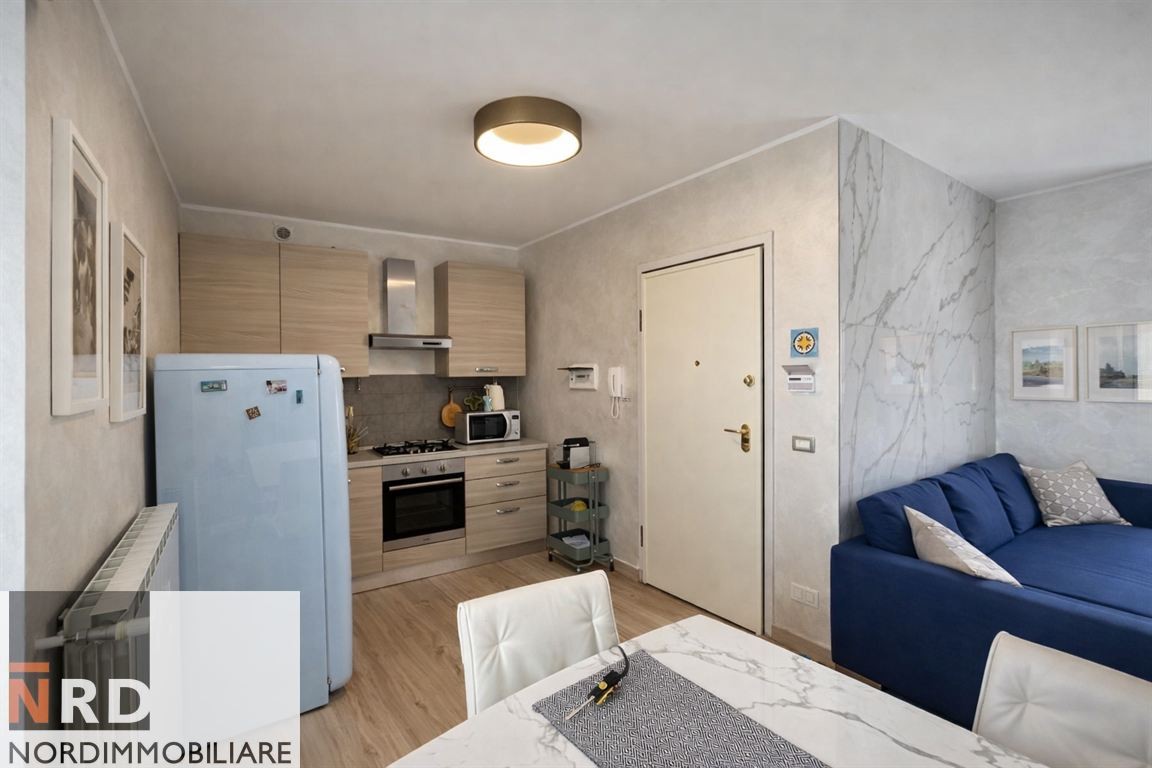 L'ingresso si apre su di una luminosa zona giorno studiata con attenzione, che accoglie la zona living in affaccio sul generoso balcone ed un angolo cottura completamente accessoriato, dotato anche di lavastoviglie.
