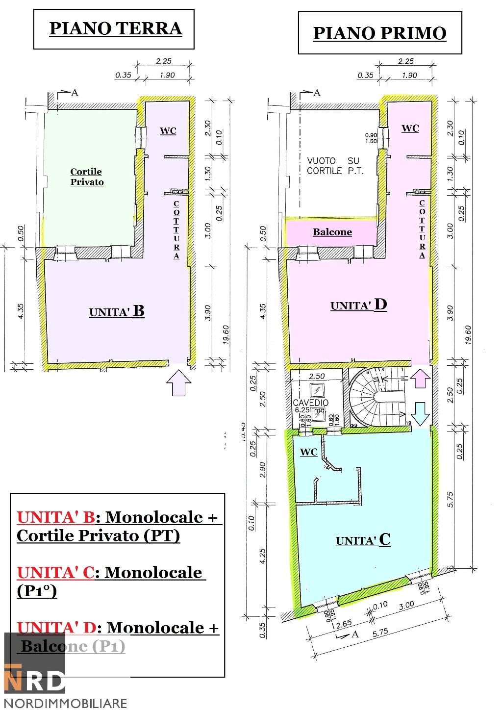 Internamente alla casa il bel corridoio affrescato con pavimenti in marmo accompagna all' unità abitativa posta al PIANO TERRA - UNITA' B trattasi di Appartamento Monolocale di c.ca 50 mq e composto da spaziosa zona Giorno/Notte , bagno con antibagno, cortiletto privato di c.ca mq 25 e cantina al piano interrato. Al PIANO PRIMO troviamo 2 Unità Distinte - l' UNITA' D Trattasi di appartamento Monolocale di mq 50 c.ca con balcone e cantina al piano interrato e l' UNITA' C un Appartamento Monolocale di mq 50 c.ca con cantina al piano interrato. Entrambe le Unità si presentano in perfetto stato, completamente arredate con bellissimi soffitti a cassettoni decorati. Al PIANO SECONDO troviamo l'UNITA' F Trattasi di un ampio Bilocale di mq 75 c.ca composto da ingresso soggiorno con angolo cottura e bagno una bella scala interna che accompagna al piano superiore dove troviamo la camera da letto matrimoniale, il secondo bagno e un ampio ripostiglio, cantina al piano interrato e l' UNITA' E Trattasi di Appartamento Bilocale di 75 mq c.ca composto da ingresso, soggiorno con angolo cottura, bagno, antibagno e una bella scala a vista che accompagna al soppalco con zona notte e secondo bagno; cantina al piano interrato, regolarmente locato.